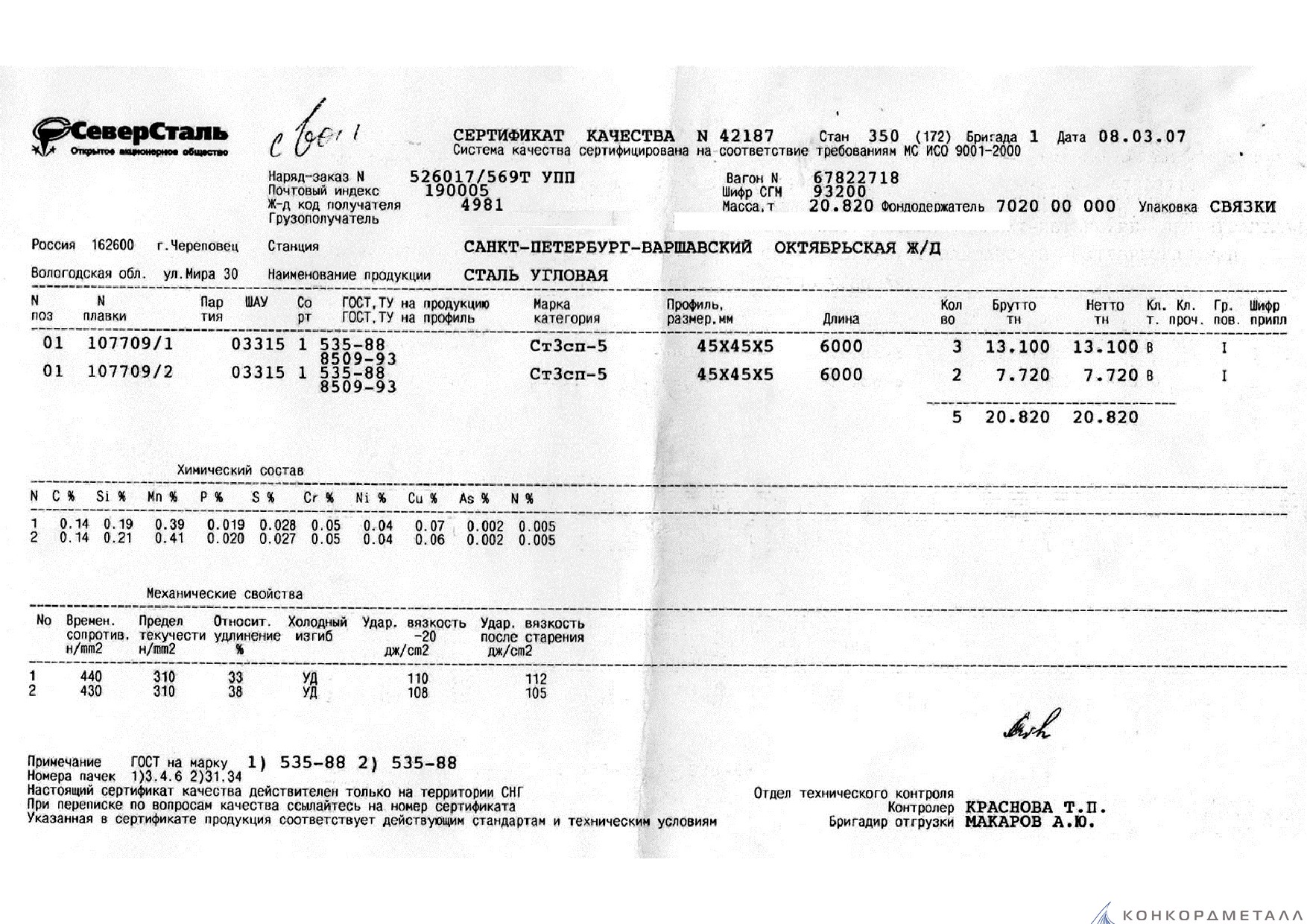 С каждой товарной позицией мы предоставляем все сертификаты и паспорта качества, а также товарно-транспортную накладную.